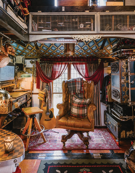 Originally featured on HGTV’s “Tiny House, Big Living,” the home was built almost entirely from recycled finds from film sets, flea markets, thrift stores and junkyards.