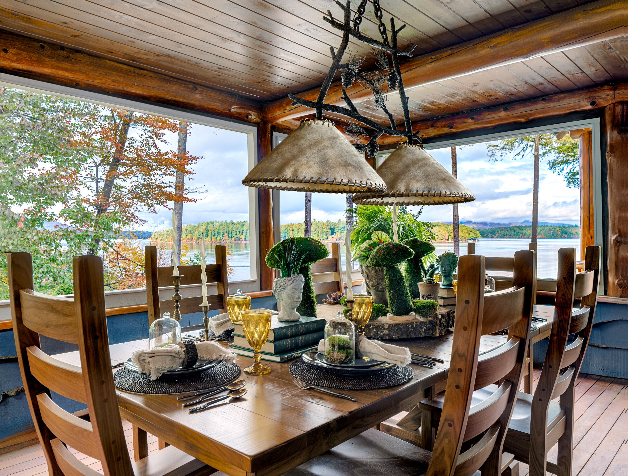 An Adirondack-style lakeside retreat is refreshed with cozy and comforting touches.